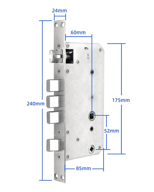 Built for strength, smooth operation, and secure locking performance, the H06/A519/A619 mortise is designed to integrate neatly into compatible door setups. Use the dimensions shown to check fitment before installation.