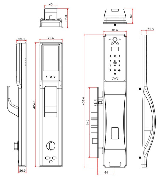 Modes of access (Entry) : Face Recognition, Palm reader, Remote control, Fingerprint, PIN code, Bluetooth key, RFID tags, physical key + more