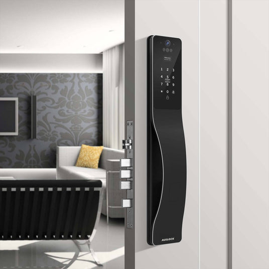It provides multiple ways to unlock your door, including facial recognition, palm recognition, fingerprint access, PIN code entry, RFID card, mobile app control, and mechanical keys for emergency backup. The dual-camera facial recognition system allows fast, hands-free entry, while the fingerprint sensor and palm recognition make everyday access simple and secure.